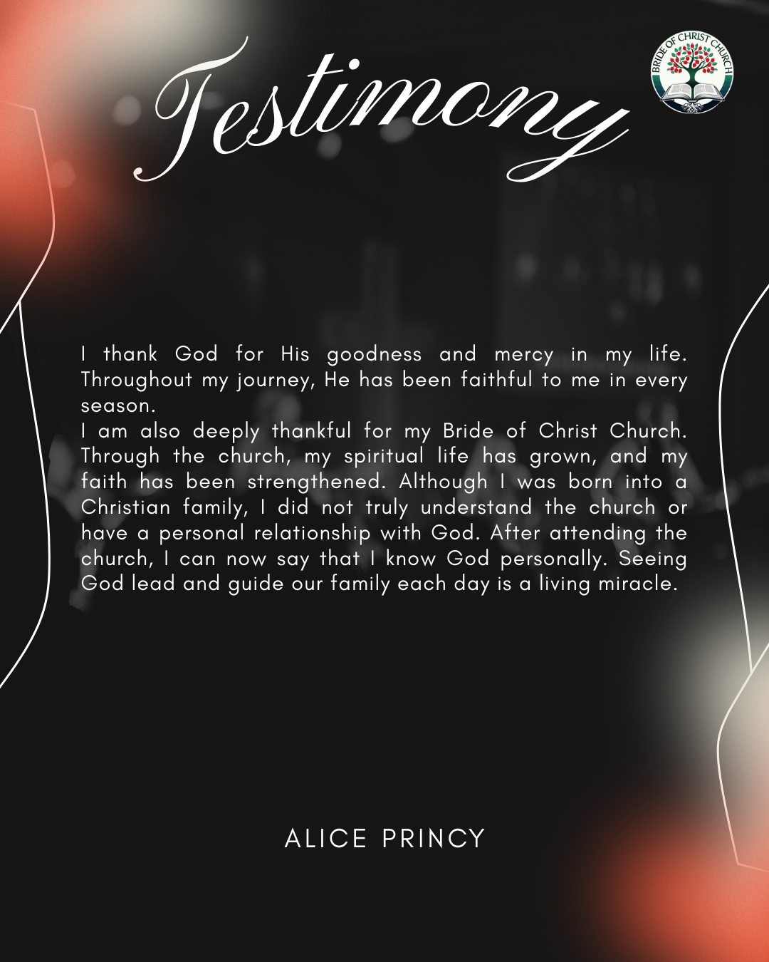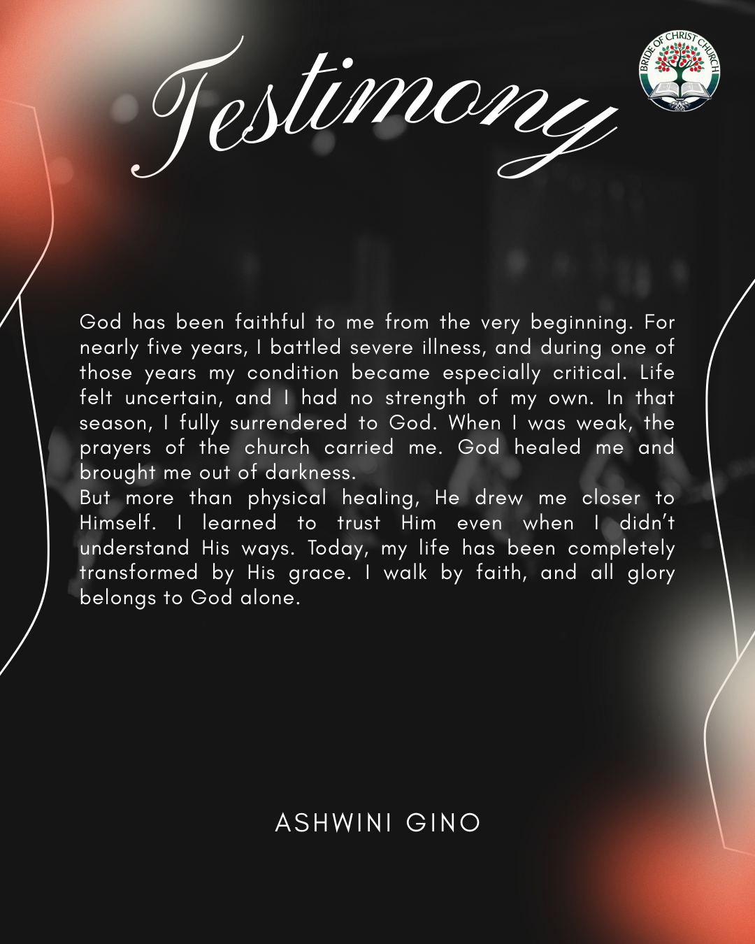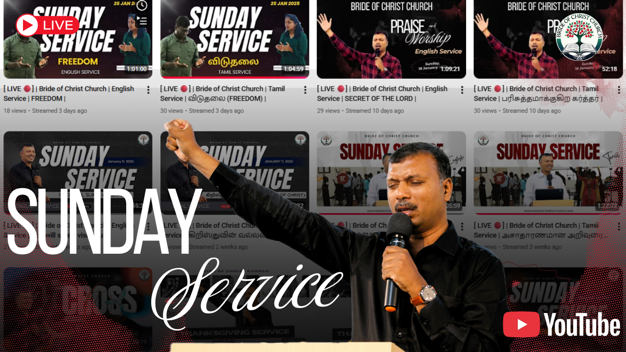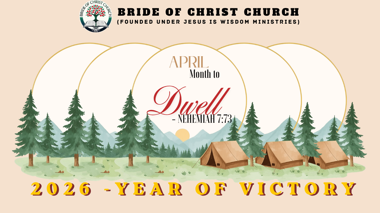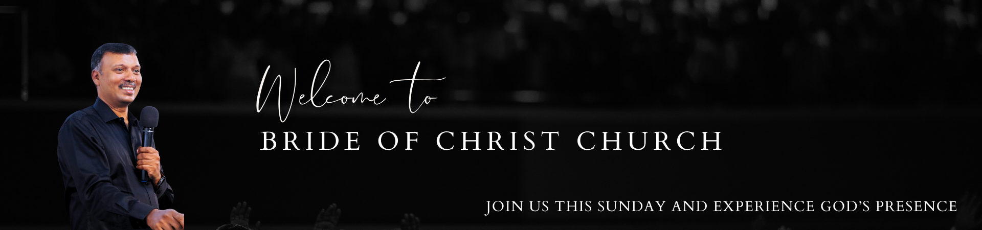Bride of Christ Church, located in Bengaluru City, India, was founded under Jesus is Wisdom Ministries (JWM). The church is led by Pastor Vijay Dev Samuel, with strong support from his wife Shiney Thomas, and other leadership team members. Bride of Christ Church is an Apostolic-Prophetic Movement (GATHER AND SET OUT) that prepares people worldwide for the Bridegroom, Jesus Christ.